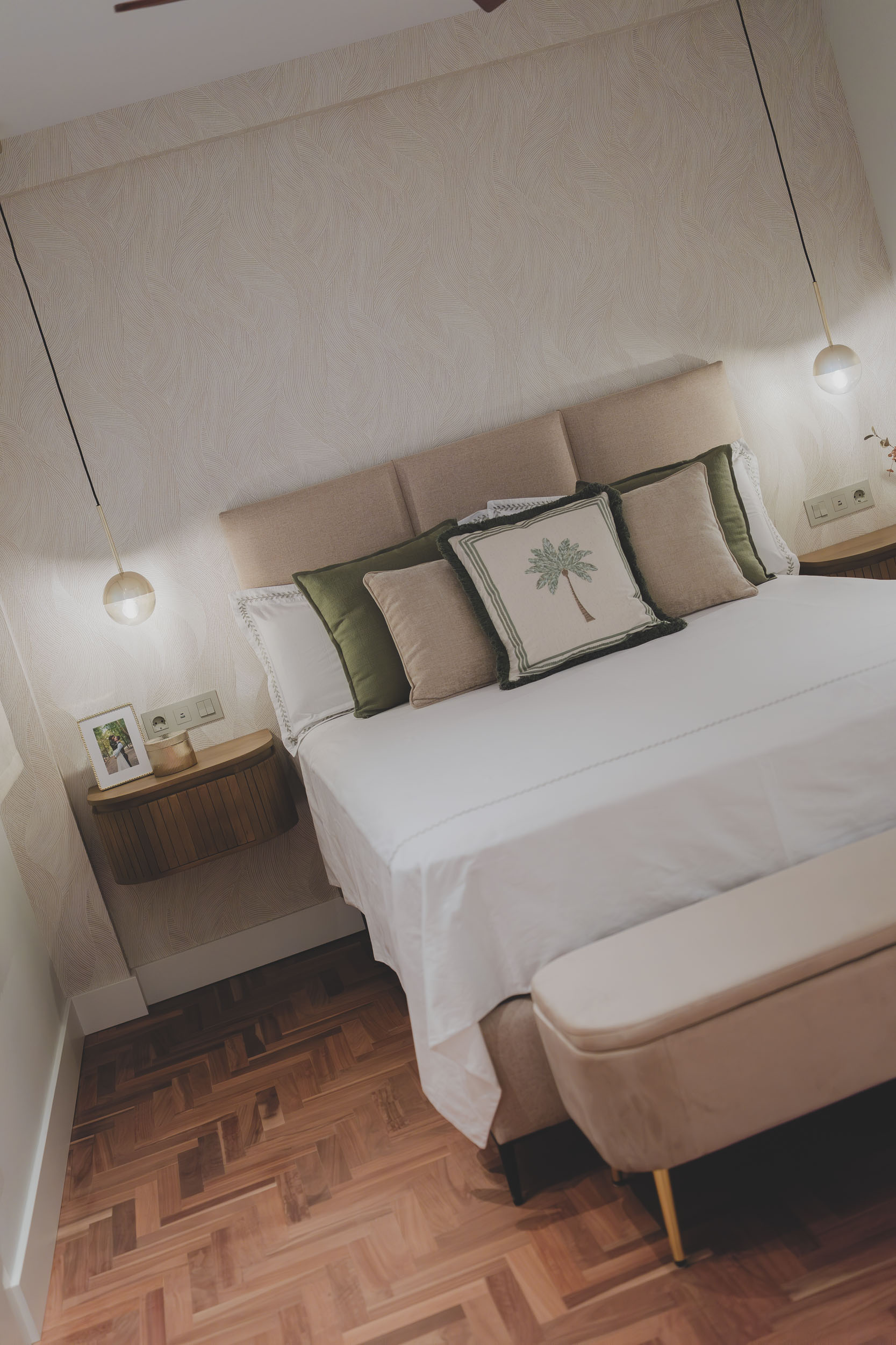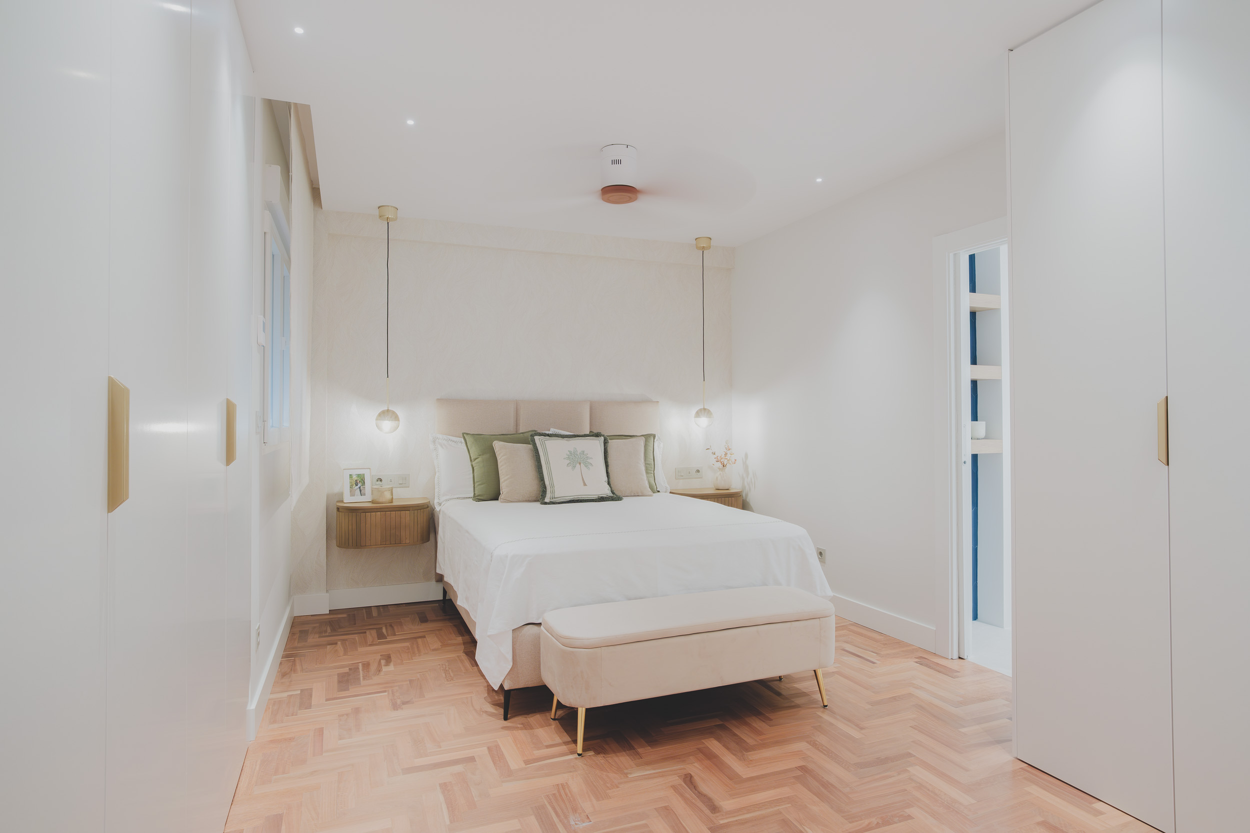 En la zona privada, el dormitorio principal en suite, el vestidor a medida y los baños de diseño contemporáneo crean una atmósfera íntima y sofisticada. Cada detalle ha sido cuidadosamente pensado para equilibrar estética y funcionalidad.