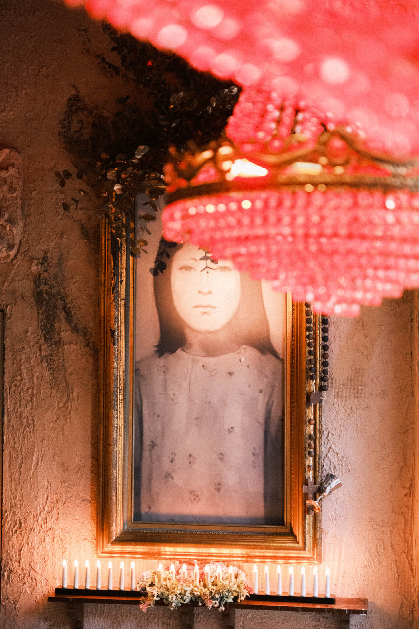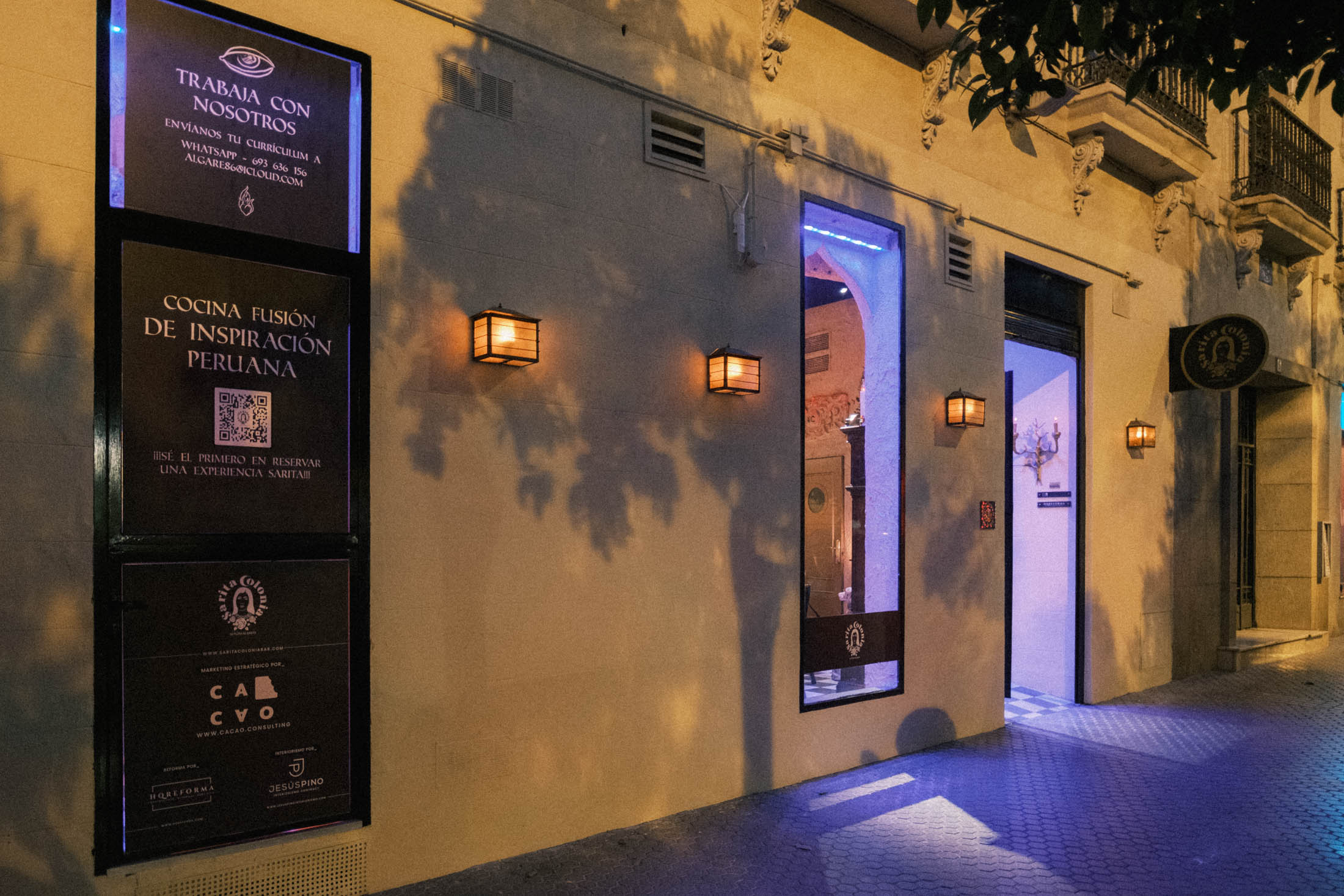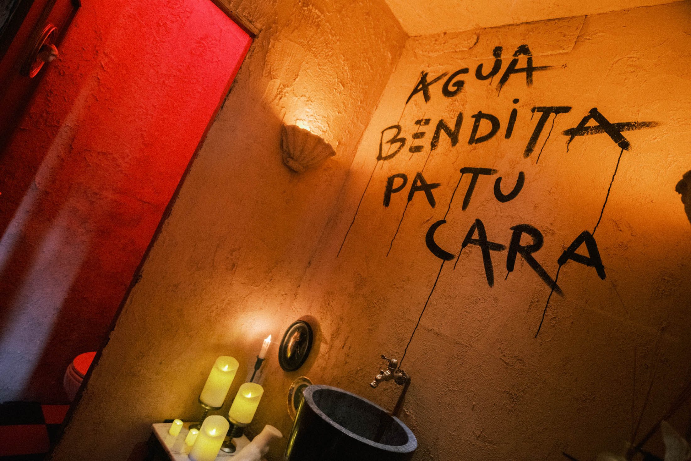 Sarita Colonia abre sus puertas en Sevilla como un lugar que va más allá de la gastronomía para convertirse en una experiencia estética y sensorial. Aquí, lo sagrado se mezcla con lo profano y la espiritualidad popular se transforma en una provocación visual que sorprende a cada paso. La fachada catalogada mantiene su elegancia sobria, apenas realzada con faroles vintage, mientras que en el interior nos recibe un universo de contrastes: muros con texturas orgánicas, espejos barrocos y elementos decorativos que parecen emerger de las paredes para envolver al visitante.