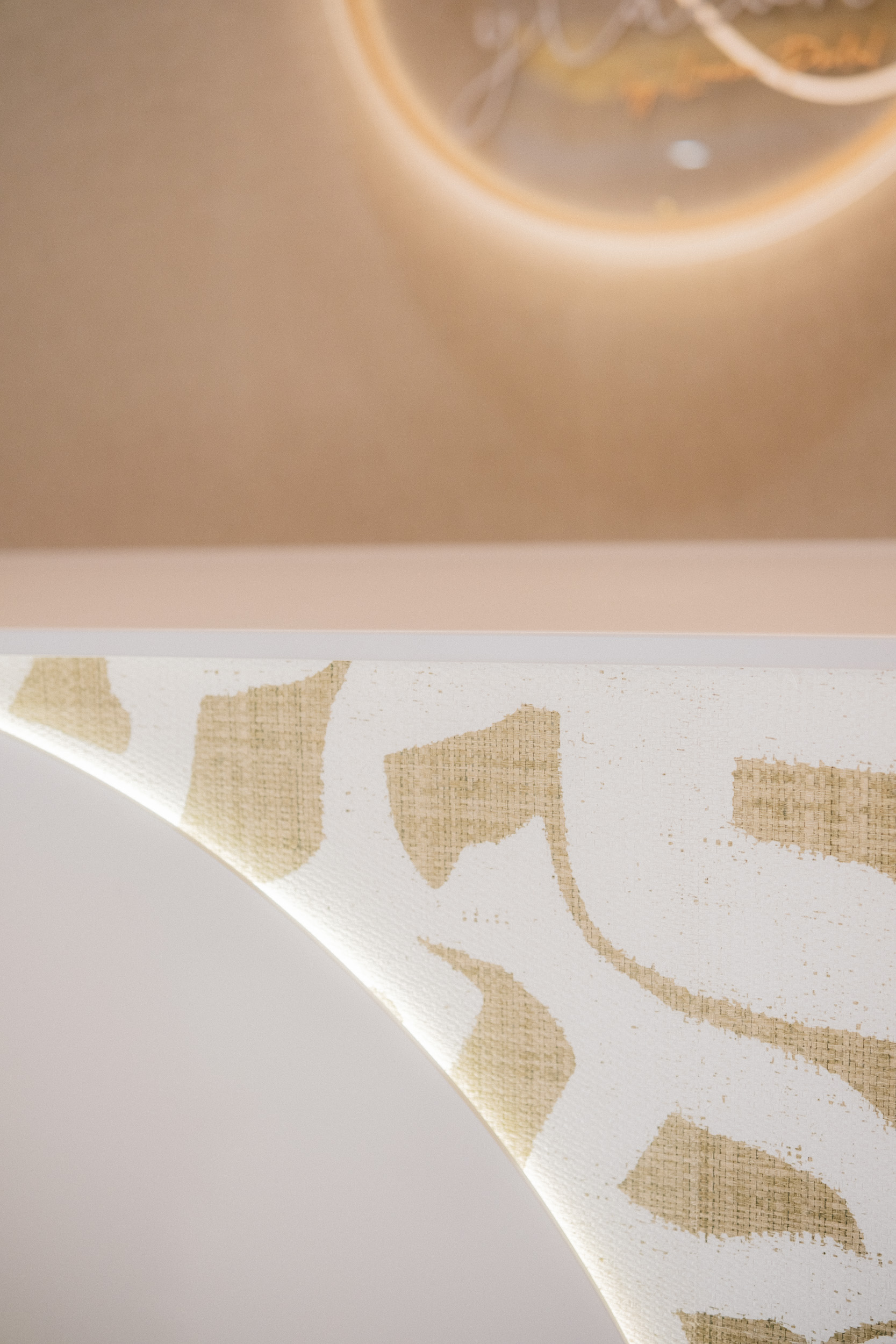 El nuevo diseño apuesta por formas orgánicas, acabados neutros y una iluminación escenográfica que aporta calma y sofisticación. El mostrador curvo retroiluminado, la entrada fluida y el foseado del techo se convierten en elementos clave que aportan carácter sin saturar el espacio.